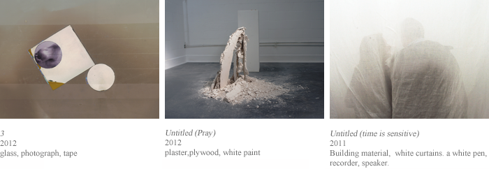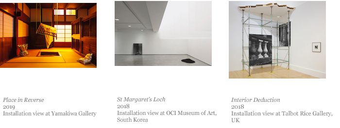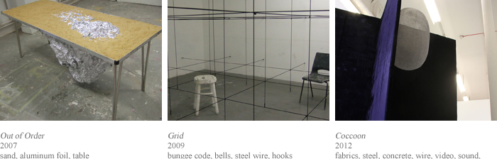 Her work features the ambiguous border between known and unknown elements where different thoughts and culture meet. Encountering the trace of history by chance and with her tactile impression she encompasses sculpture, site-specific installation, photography, film and drawing.