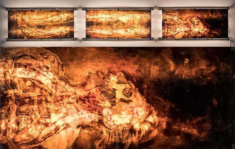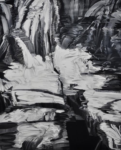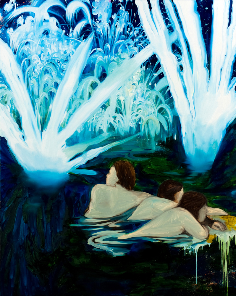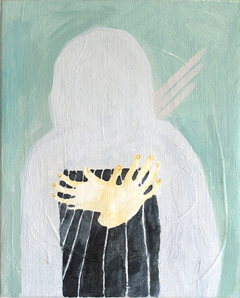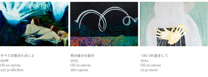 眠っている人のうえを歩く小人たち。洞窟の奥で滝を見つける。森をさまよう。噴射とそれには無頓着な気だるそうな人たち。手を重ねる。ずれた月の軌道。新幹線のなかから乱視で見た流れるネオン。これらはすべて私が描いてきた作品を説明する言葉です。そこにはいつも、「祈る」ということが底流をなしています。祈るという行為が、不完全なわれわれを表す象徴的な行為ととらえ、それにまつわるものを描いています。